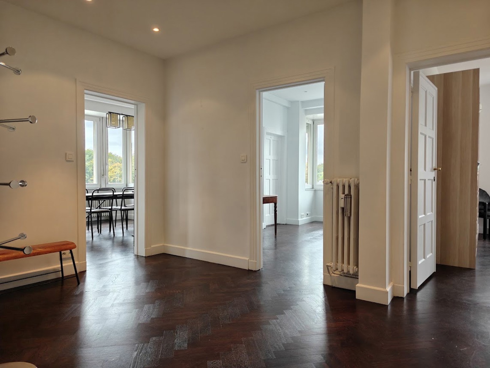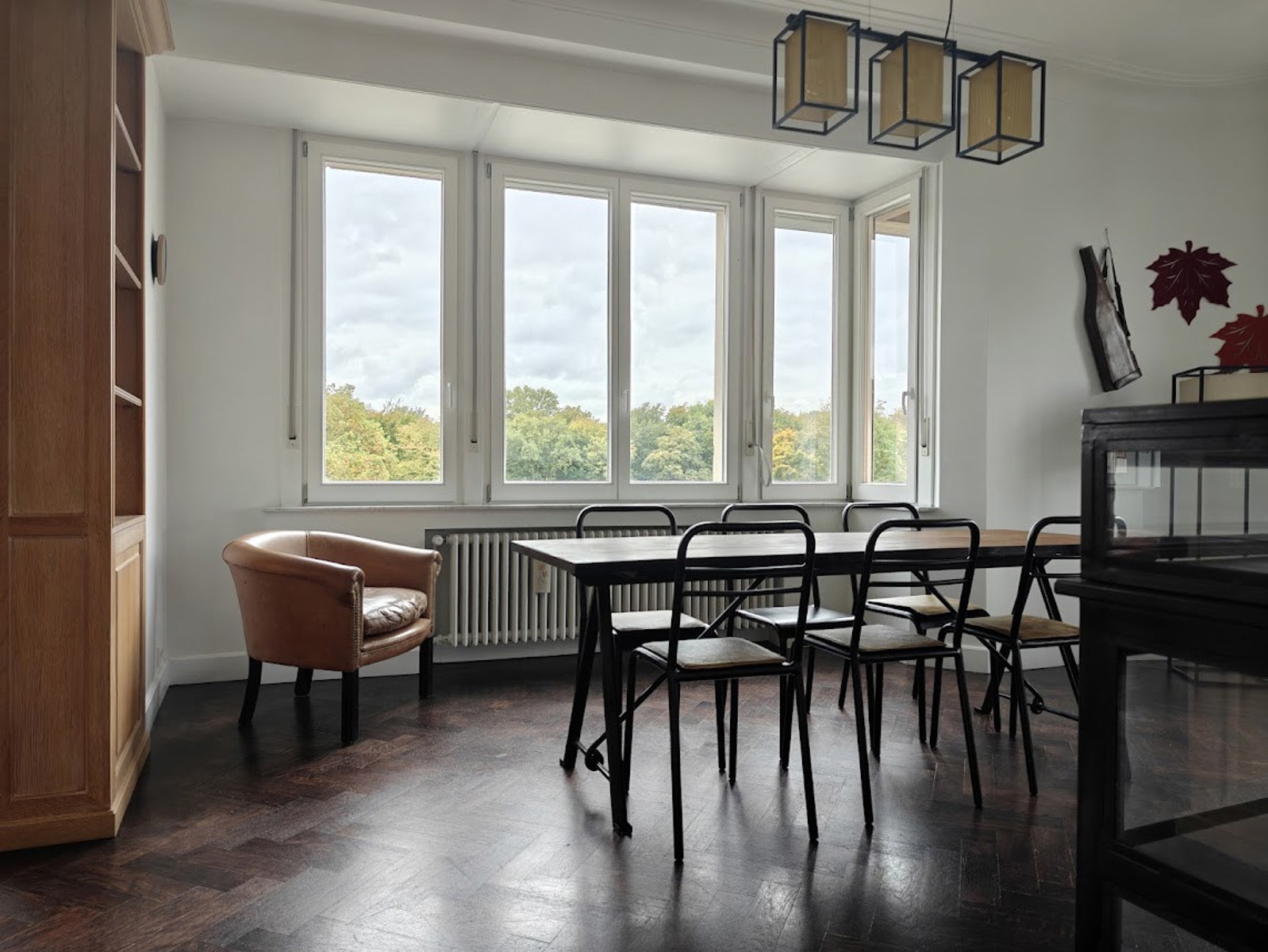 Situé sur la prestigieuse avenue Louise, face au Bois de la Cambre et au Clos des Milliardaires, cet élégant appartement entièrement meublé occupe le sixième étage d’un immeuble de standing et offre une vue imprenable sur le bois. L’appartement séduit par son hall d’entrée spacieux, son agréable espace de vie lumineux comprenant un salon et une salle à manger avec balcon, ainsi qu’une grande cuisine séparée et entièrement équipée. Il dispose de trois chambres, dont une suite parentale avec salle de bains et WC, d’une salle de douche séparée et d’un WC invité. Situé sur un coin de l’immeuble, il bénéficie d’une belle luminosité et d’une vue dégagée sur les alentours verdoyants. Les charges mensuelles s’élèvent à 400 €, comprenant une provision pour le chauffage, l’eau chaude et froide ainsi que l’entretien des parties communes. L’appartement est disponible immédiatement. Bail d’un an souhaité.