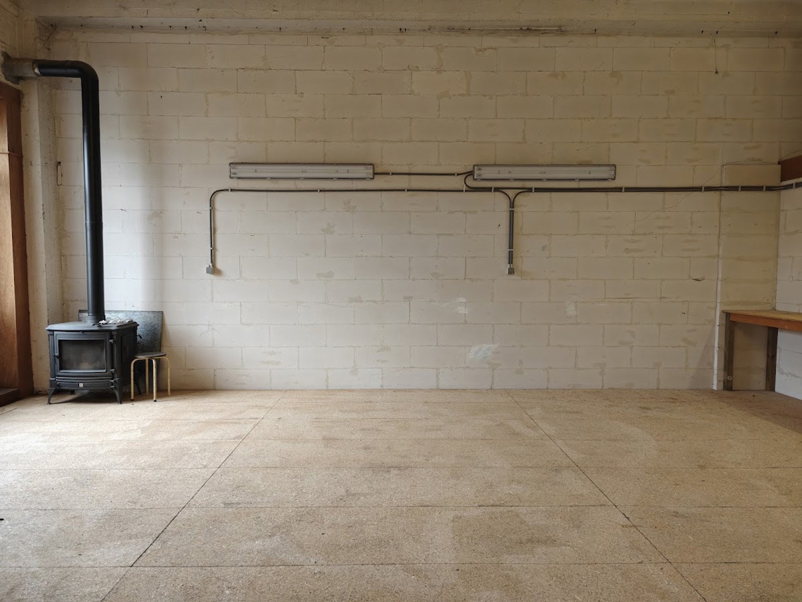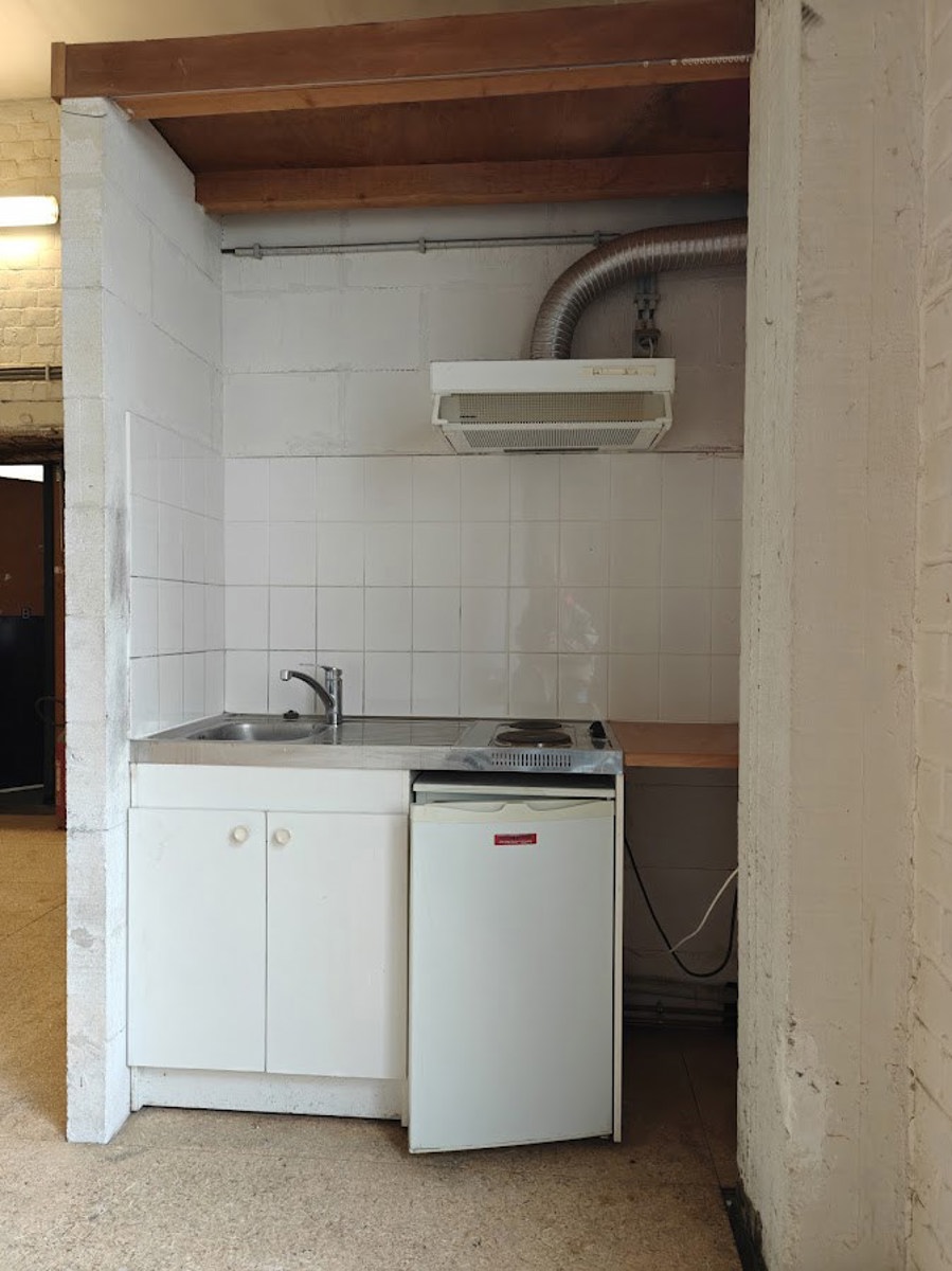 L’atelier comprend une pièce principale, une mezzanine, un WC séparé ainsi qu’un coin eau/kitchenette, et est chauffé au poêle. Les charges mensuelles s’élèvent à 75 € et couvrent la consommation privative d’eau, l’entretien et l’électricité des parties communes ainsi que la taxe régionale et le précompte.