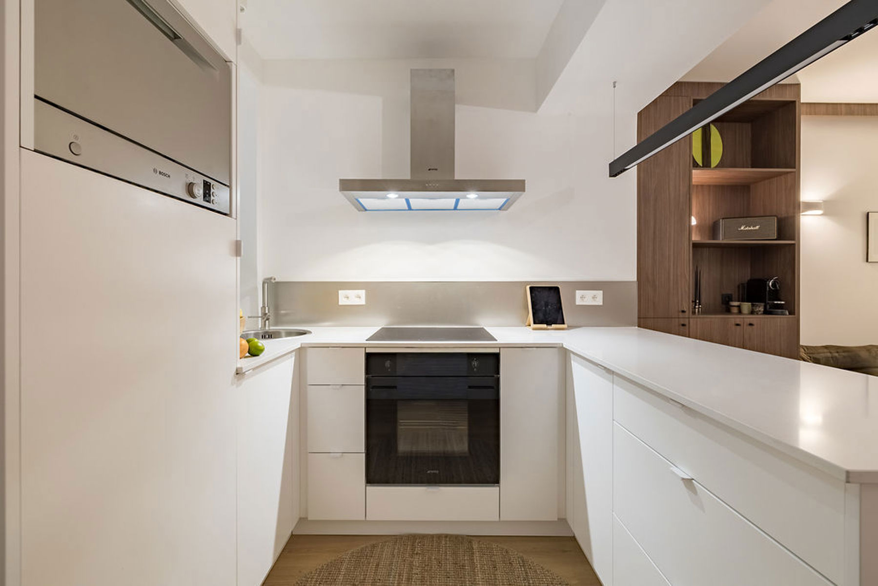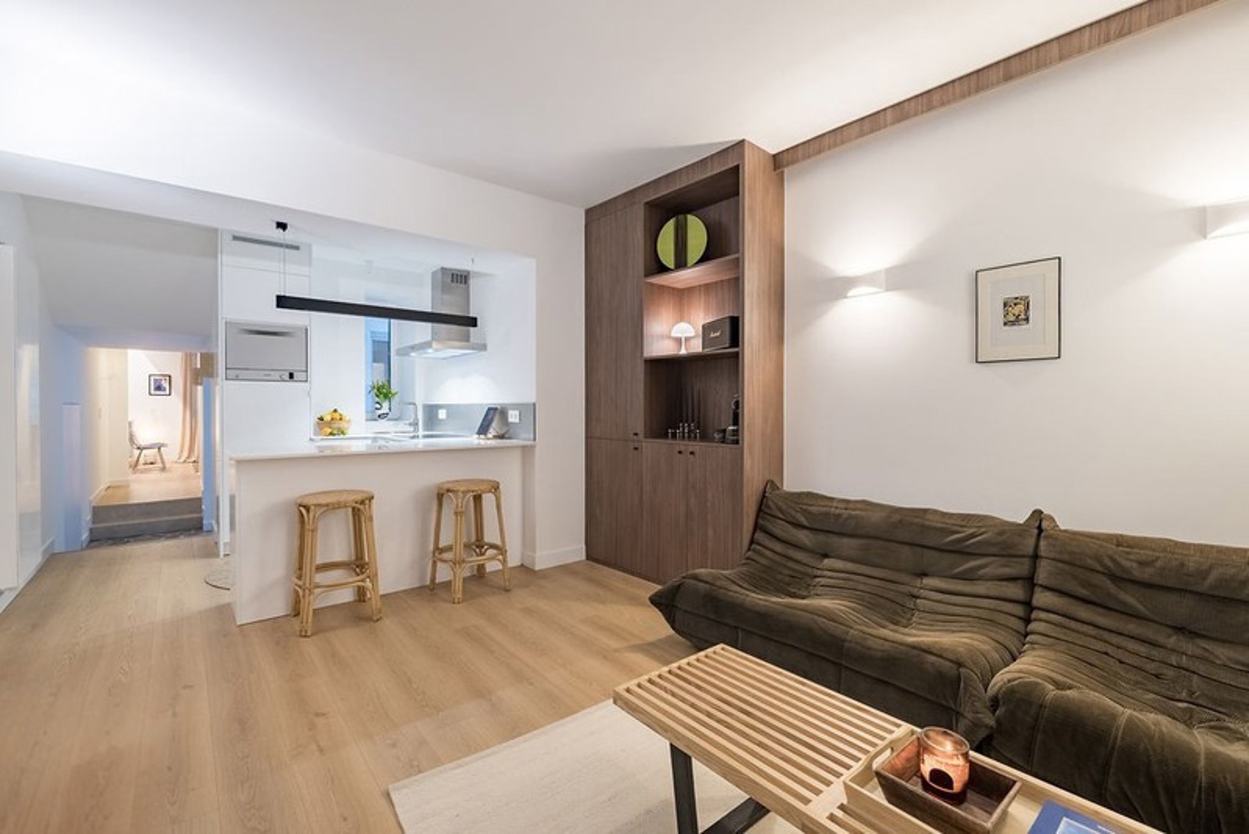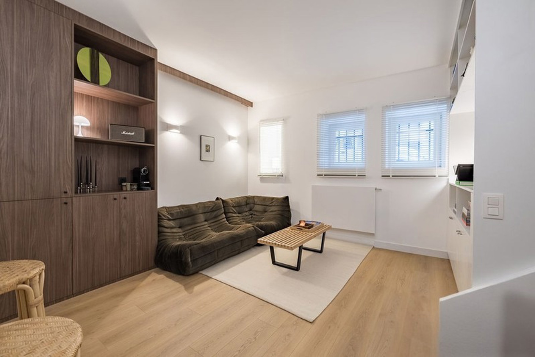 Au cœur du quartier de la Place de Londres, à deux pas des Institutions européennes et entouré de commerces et de restaurants, tout en bénéficiant d’une situation intérieure très calme, cet appartement exceptionnel prend place dans l’ancienne conciergerie d’un hôtel de maître du XIXᵉ siècle. Rénové intégralement avec permis et architecte, il offre un niveau de finition remarquable : matériaux nobles, pierre de France, bois de noyer et équipements entièrement neufs. L’espace de vie, chaleureux et soigneusement aménagé, s’ouvre sur une cuisine full-équipée sur mesure et bénéficie d’un patio privatif apportant une belle luminosité. La chambre, située à l’arrière, dispose d’une salle de douche attenante, d’un dressing intégré et d’un accès à une petite cour arrière.